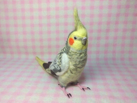*** 【受注作成品】 オカメインコ パール 羊毛フィギュア リアル ほぼライフサイズ 羊毛フェルト(羽色変更可能) ***