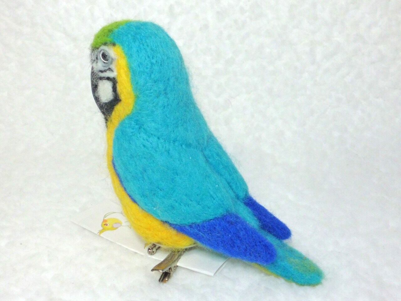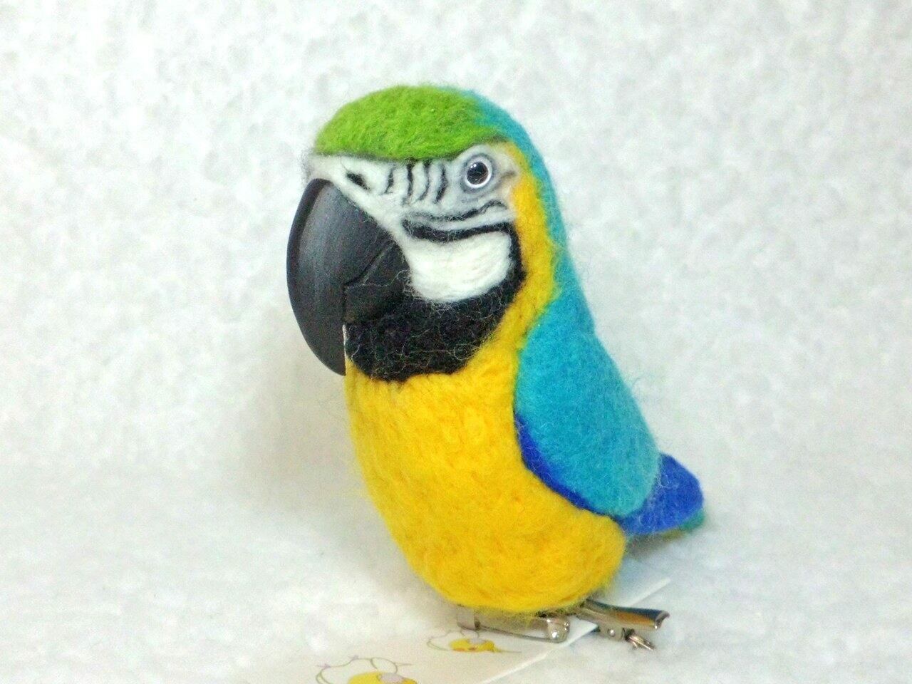 【受注作成品】 ルリコンゴウインコ miniリアル ☆選べる2タイプ☆ クリップ付ブローチorマグネット 羊毛フェルト
